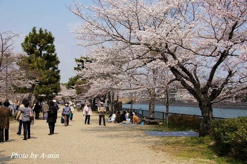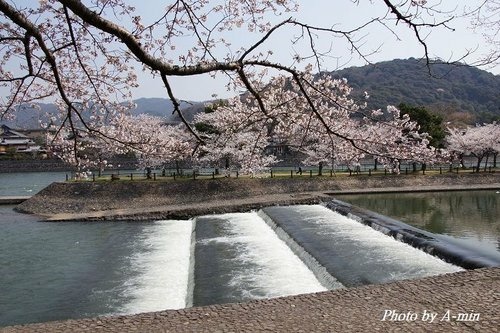 遠眺宇治東北岸的宇治神社一帶.. 也是櫻花盛開中~