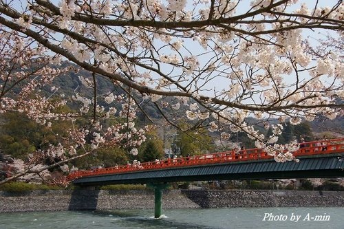 櫻花+通往東北岸宇治神社的朝霧橋.