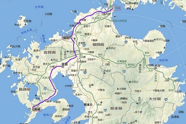 小倉-福岡-長崎. 218公里