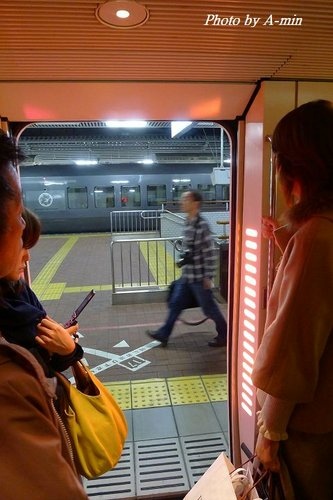 搭車的人依然超多~ 找了一處還可容身的門口.先上再說..