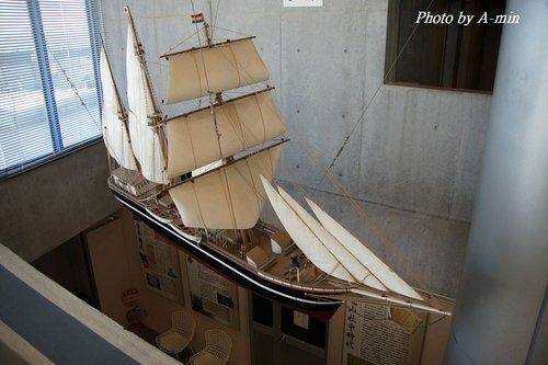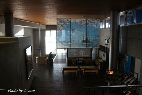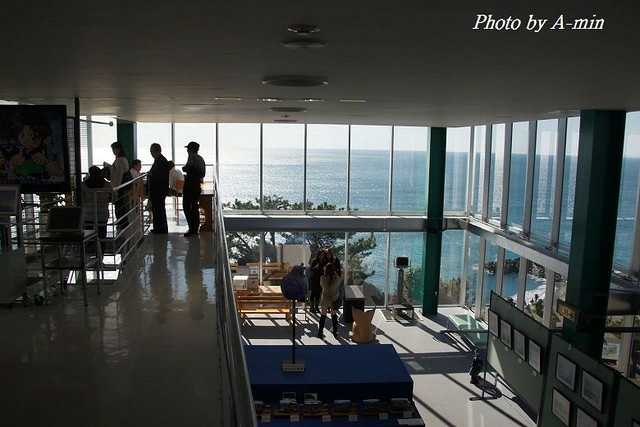 走到二樓展覽區的末端.是個有大面玻璃的展望室.可以眺望整個桂濱..