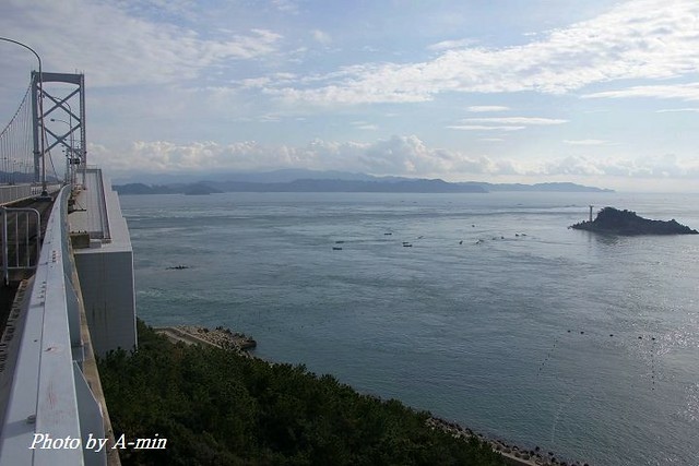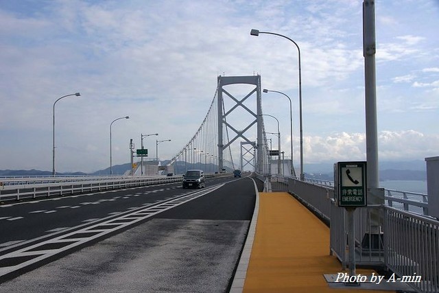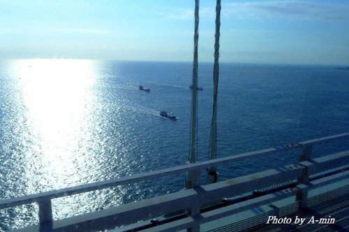 巴士開上了跨海大橋 ( 明石海峽大橋 )..