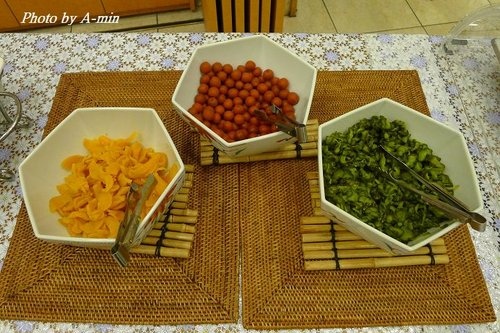 這邊有三種醬菜.. 中間那盆是一種小酸梅.. 香味有點像櫻桃. 還不錯吃~