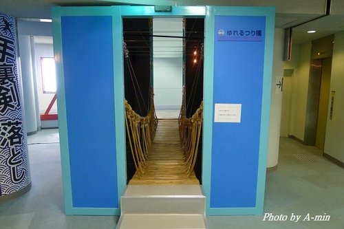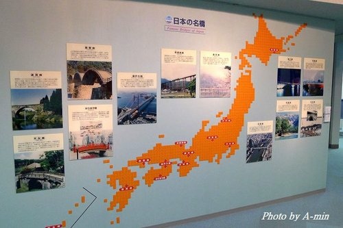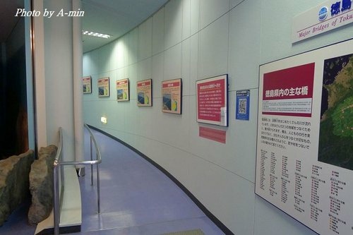 通往2樓的坡道.. 牆壁上則是介紹德島縣境內的橋..