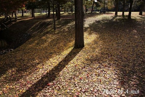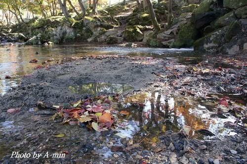 時候還沒到.. 池底的落葉就只有這麼一些..