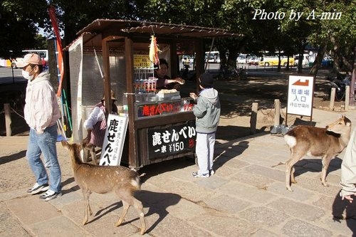 東大寺門口有賣鹿仙貝的攤子..可以買來餵鹿..