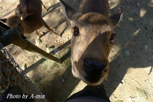 這頭鹿的眼神有點吃驚.像是在說.好大的膽子~居然敢在奈良巴鹿…