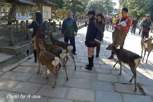 買了鹿仙貝.鹿就紛紛靠了過來..