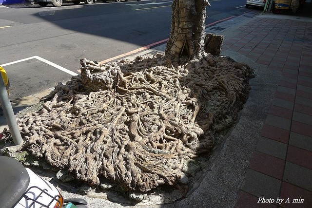 原來這數應該是種在花壇裡面.根就擠在花壇裡面長成長方形的..