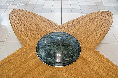 中間的石材半圓球體.有一些簡單的幾何型雕花..