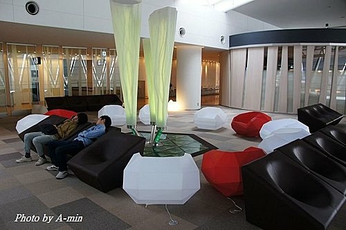 座位區的中間..有個像是雕塑.也有點像座椅的東西..