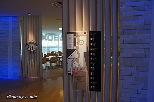 牆上有簡單的用餐區平面圖.. 另一邊有餐廳的標示..