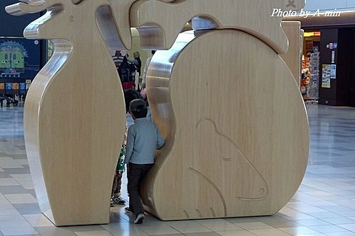 出境大廳裡.. 有這麼一座像是木材質感的雕塑..