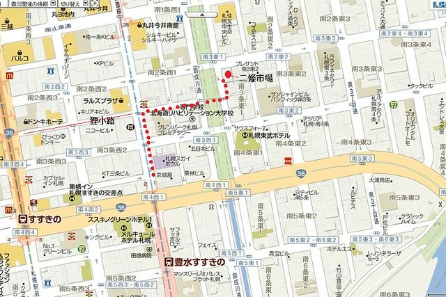二條市場位於札幌大通電視塔的南南東方約300公尺.