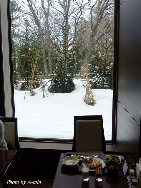 特別挑了靠窗的位子. 一邊享用早餐.一邊欣賞雪景..