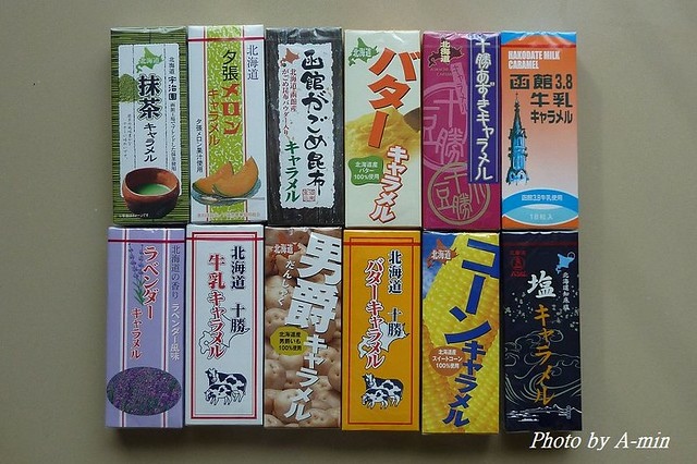 收拾行李前.. 把前一晚買的各種北海道牛奶糖放在桌上大合照..