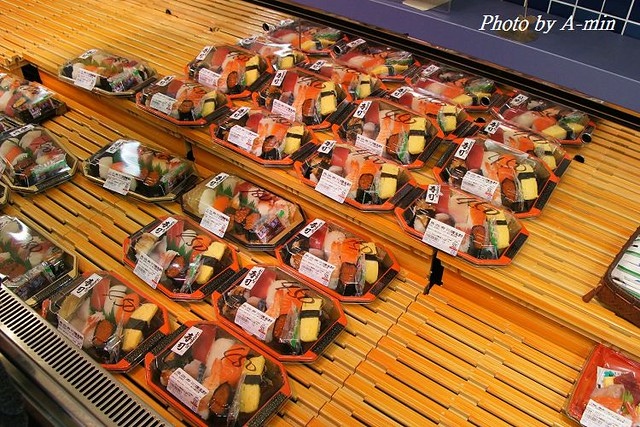 走到百貨公司地下室美食街.看到做好的壽司便當..
