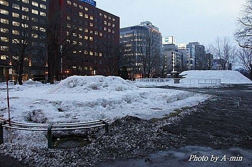 來到大通公園.. 看到這些白色的雪堆.是札幌冰雪節(雪祭)的大型雪雕的遺跡..