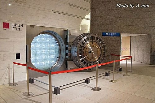 原來是這家銀行把舊金庫的門裝飾在地下街.. 還真有意思~