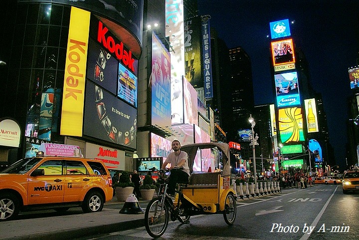 ↓ 蠻喜歡這張時代廣場背景的三輪車..