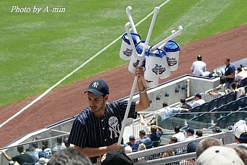 而在球賽開始之後. 除非有買這個位置的票.. 不然在一旁的球場人員就會來趕人..