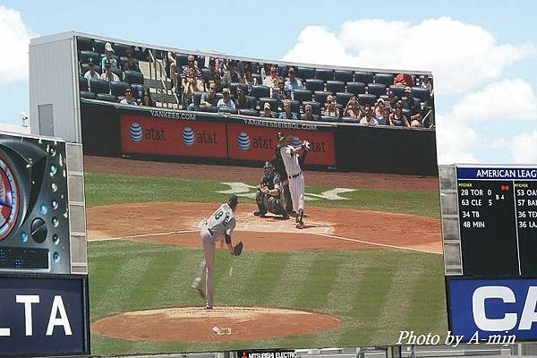 下一棒在預備區準備上場的是 Robinson Cano. 投手面對這種強棒連連的打線.壓力一定不小~