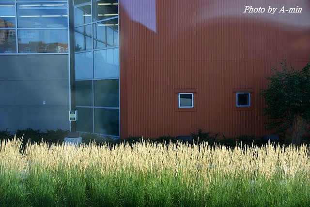 ↓ 過了大橋.經過一棟辦公大樓.. 奇的是這大樓旁種的植物有金黃色的穗子.是小麥??