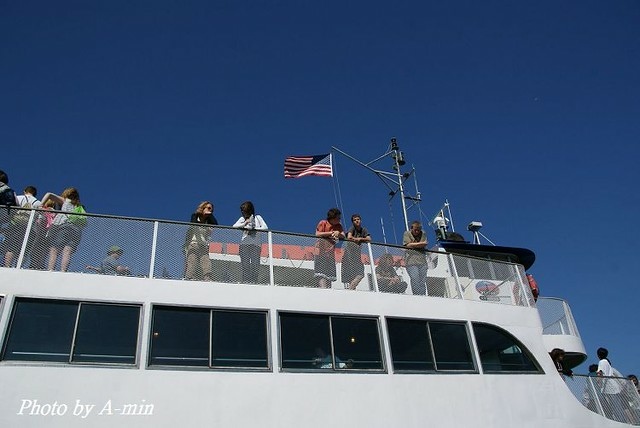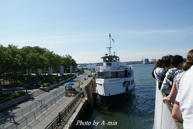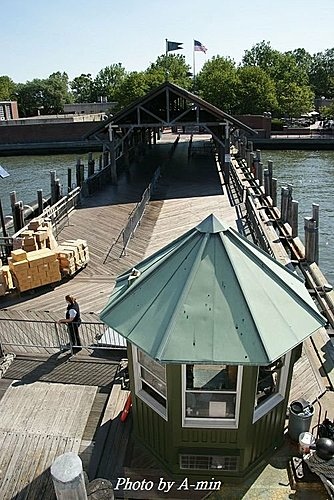 ↓ 經過一小時半的車程到達紐約市曼哈頓南邊的港區..
