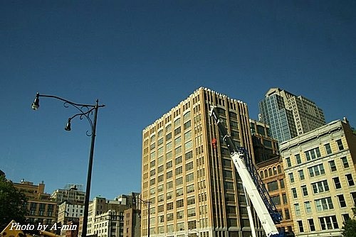 ↓ 回頭拍攝紐約曼哈頓區的大樓群..