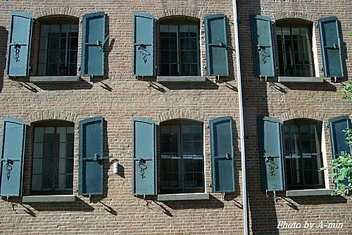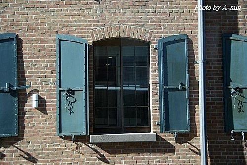 ↓ 看到這棟磚造的樓房. 窗戶外面還有鐵板做的保護窗板..