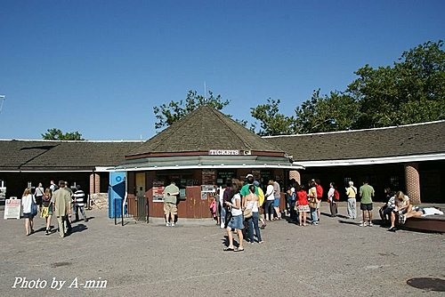 領隊去買前往自由島的船票.. 這遊客中心是城堡改建的..