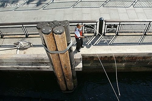 ↓ 正在解開繫船纜繩的碼頭工作人員..