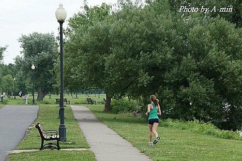 ↓ 正打算拍遠處的水鳥時..聽到一陣腳步聲,是一位到湖邊跑步的洋美眉..