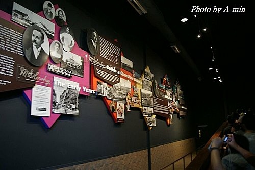 ↓ 準備去搭乘參觀工廠的小火車(免費).. 這邊的牆上是敘述賀喜市巧克力的歷史.