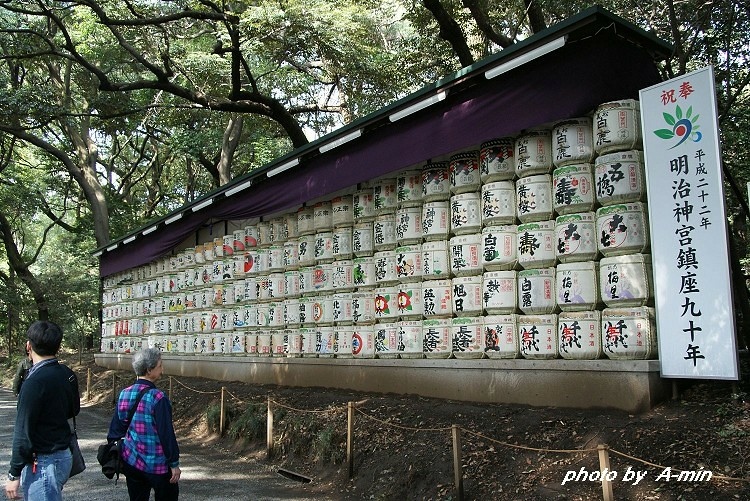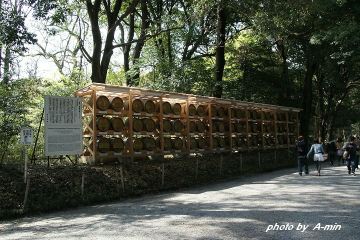 南參道旁有各地方供奉的清酒.. 都是整桶整桶的..