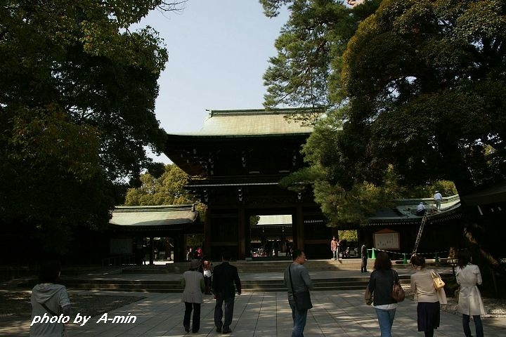 午餐後. 來到了明治神宮參訪.. 神宮是用來祭祀天皇的廟堂. 神宮裡的主神就是天皇..