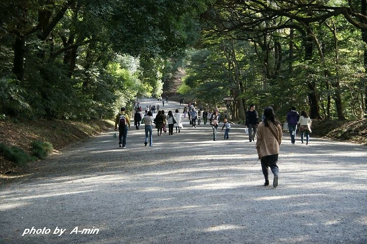 搭遊覽車來.從第一停車場步行進入神宮.. 一走進來就在南參道上.