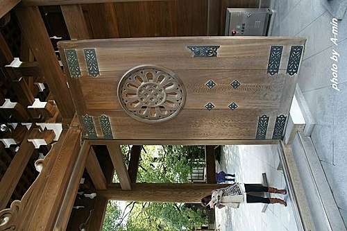 大門及梁柱是很清爽的原木色. 雕飾也很簡單..