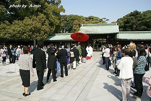 眾多遊客的圍觀... 感覺好像變成明治神宮的表演項目了... XD
