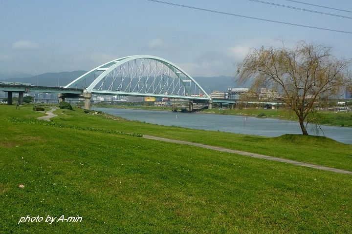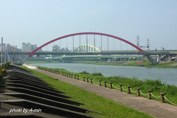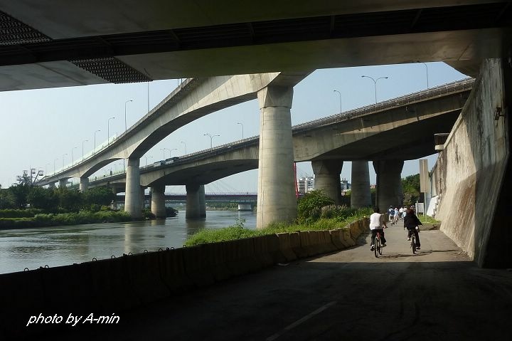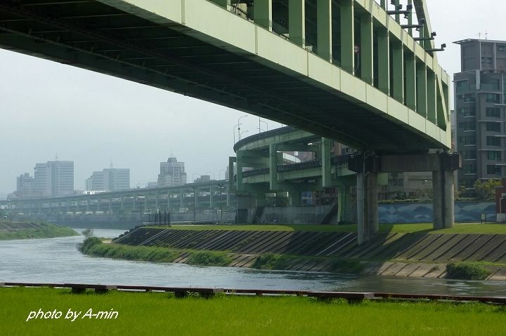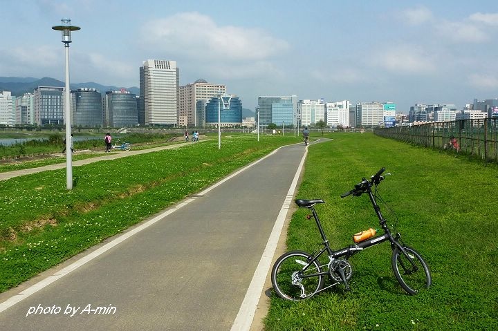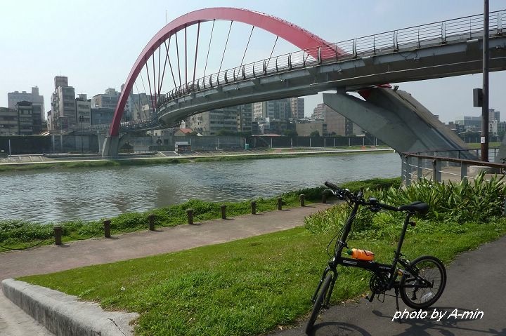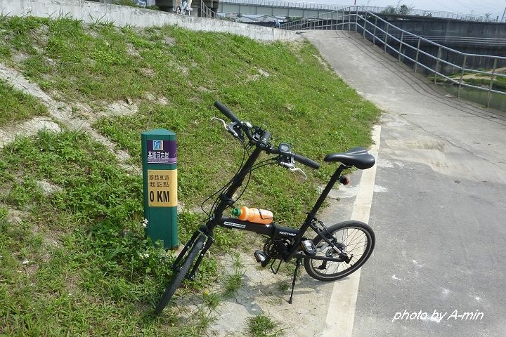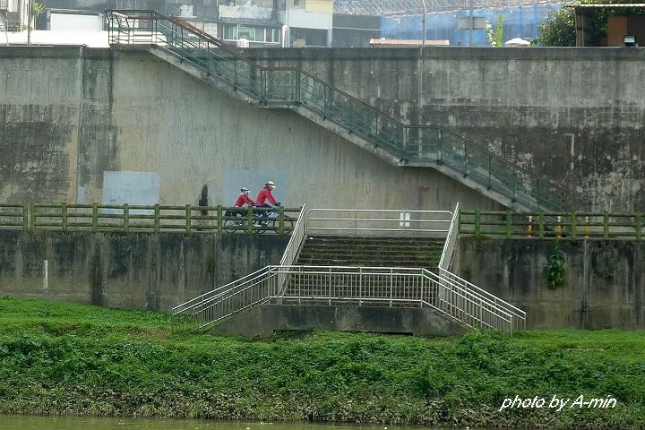 又往前騎了一段.. 發現這邊的視角也不錯.於市又扛著單車.爬上堤防頂拍照..