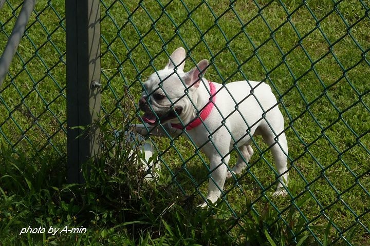 小范在這邊留個影好了.. 右手邊草坪上鐵絲網的範圍就是蹓狗區..