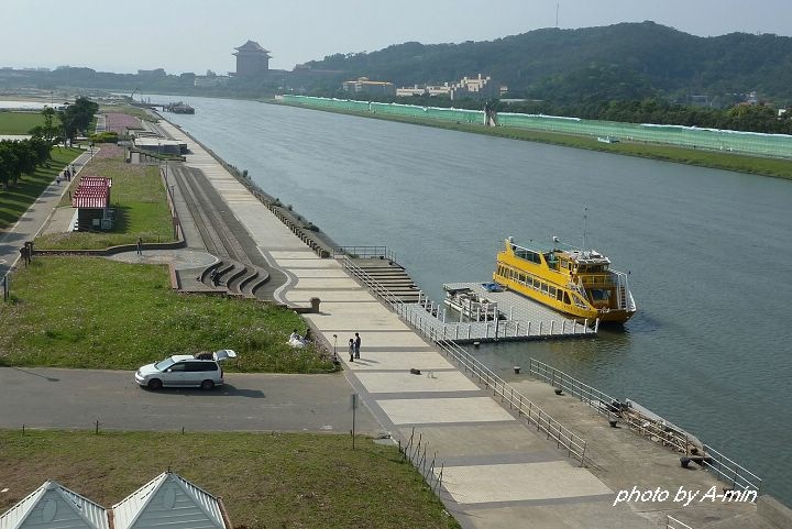騎上大直橋.正好有渡船停靠在碼頭.. 旁邊還有....