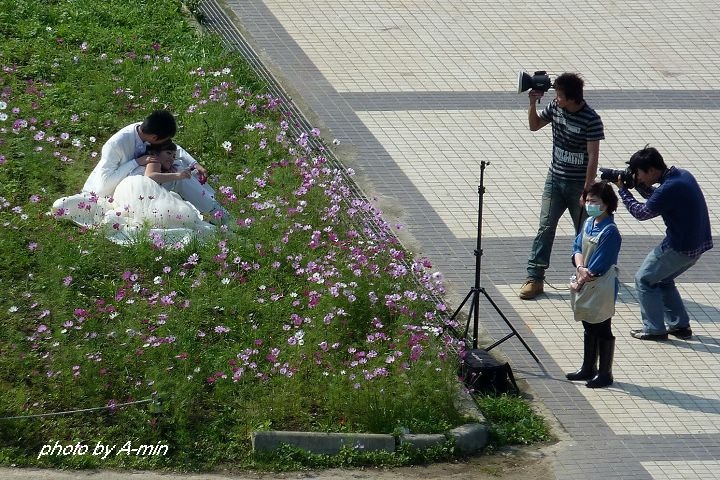 原來是在拍婚紗外景.. 有趣的畫面.(呵呵.)