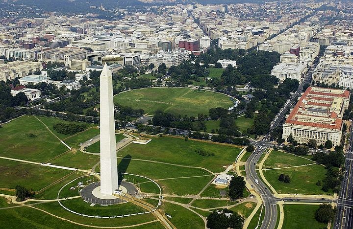 碑的周圍.精緻幾何形狀的街道與紀念建築物向外輻射分佈...