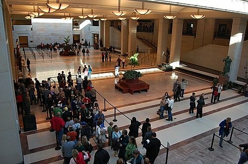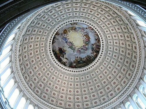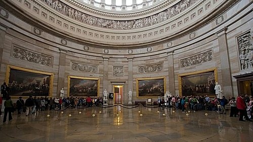這個房間是正方形.像個山洞.挑高達驚人的一百呎.由綠色花崗岩的獨立石柱支撐.