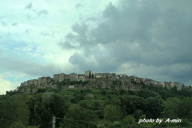 高速公路旁突然出現一座山城.. ( 應該是 奧維耶多 Orvieto )