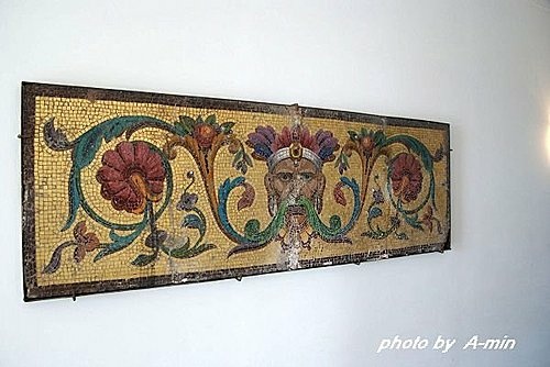 牆壁上展示的古羅馬玻璃馬賽克的嵌鑲畫.有近千年的歷史..