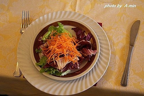 第一道上來的是.. 生菜沙拉.. 在不加任何調的情況下.. 我必須說.台灣的生菜比較好吃..