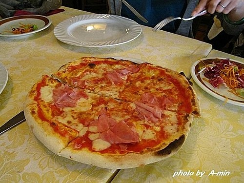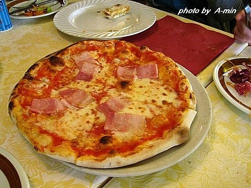第一道上來的是.. 火腿披薩.. 配料很單純.就是起士.番茄醬.火腿..