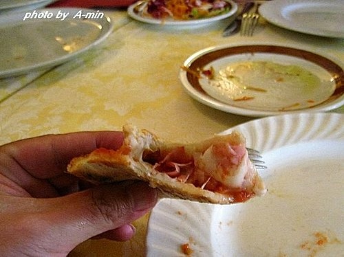這應該算是薄披薩. 聽說義大利的標準吃法是把披薩像這樣折起來吃.